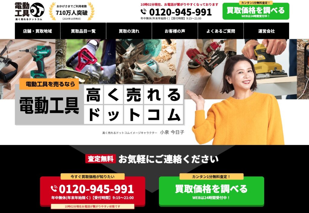 利用者数も700万人を超えており、電動工具をはじめ芝刈り機や洗浄機など幅広いジャンルの工具を買取してくれます。